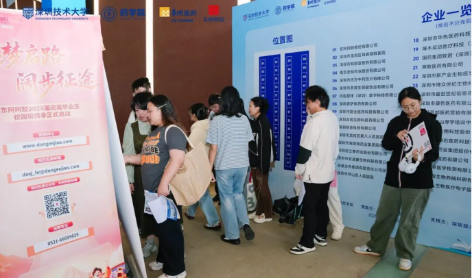本次双选会由学院访企拓岗小组牵头,携手东阿阿胶,并联动近50家生物医药领域优质企业。东阿阿胶、海普瑞、信立泰、国药致君等行业知名企业现场设展,围绕研发、生产、销售、管理与技术支持等领域,释放了超过700个专业岗位。