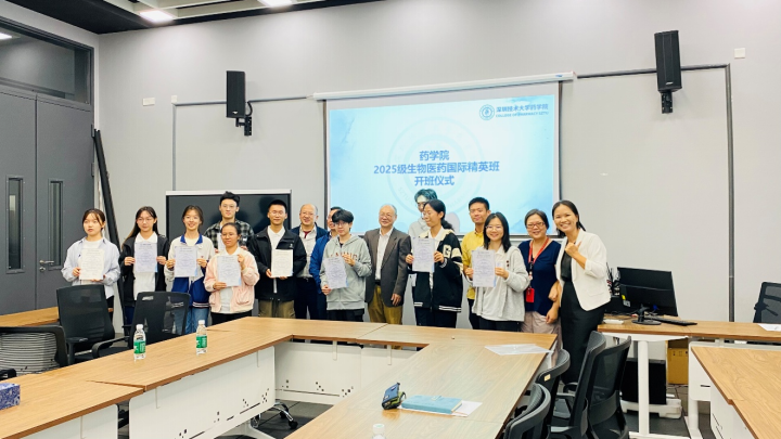 2025年11月11日下午17:00,深圳技术大学药学院在A2-618教室举行了生物医药国际精英班开班仪式暨“Pharma Global”团队成立仪式。学院领导和来自新加坡国立大学(NUS)的嘉宾共同见证了这一历史性时刻。此次活动标志着药学院在国际化人才培养和学术交流方面迈出了崭新的一步。