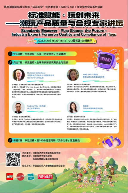 近日,由国家标准化管理委员会主办,深圳技术大学、北京中轻联认证中心有限公司联合承办的国际标准化组织玩具安全技术委员会(ISO/TC181)学术年会在深圳技术大学成功落幕。这场汇聚全球玩具产业顶尖力量的行业盛会,吸引了乐高、美泰、孩之宝、泡泡玛特等知名品牌,SGS、Intertek 等国际权威检测认证机构,以及 15 个国家和中国港澳台地区的 60 余位国际标准制定者、产业链核心代表参会,与学校 300 余名师生共探产业革新与标准发展方向。而在这场高规格国际会议的背后,深圳技术大学药学院义工团队以专业、细致的志愿服务,成为活动顺利推进的重要保障。